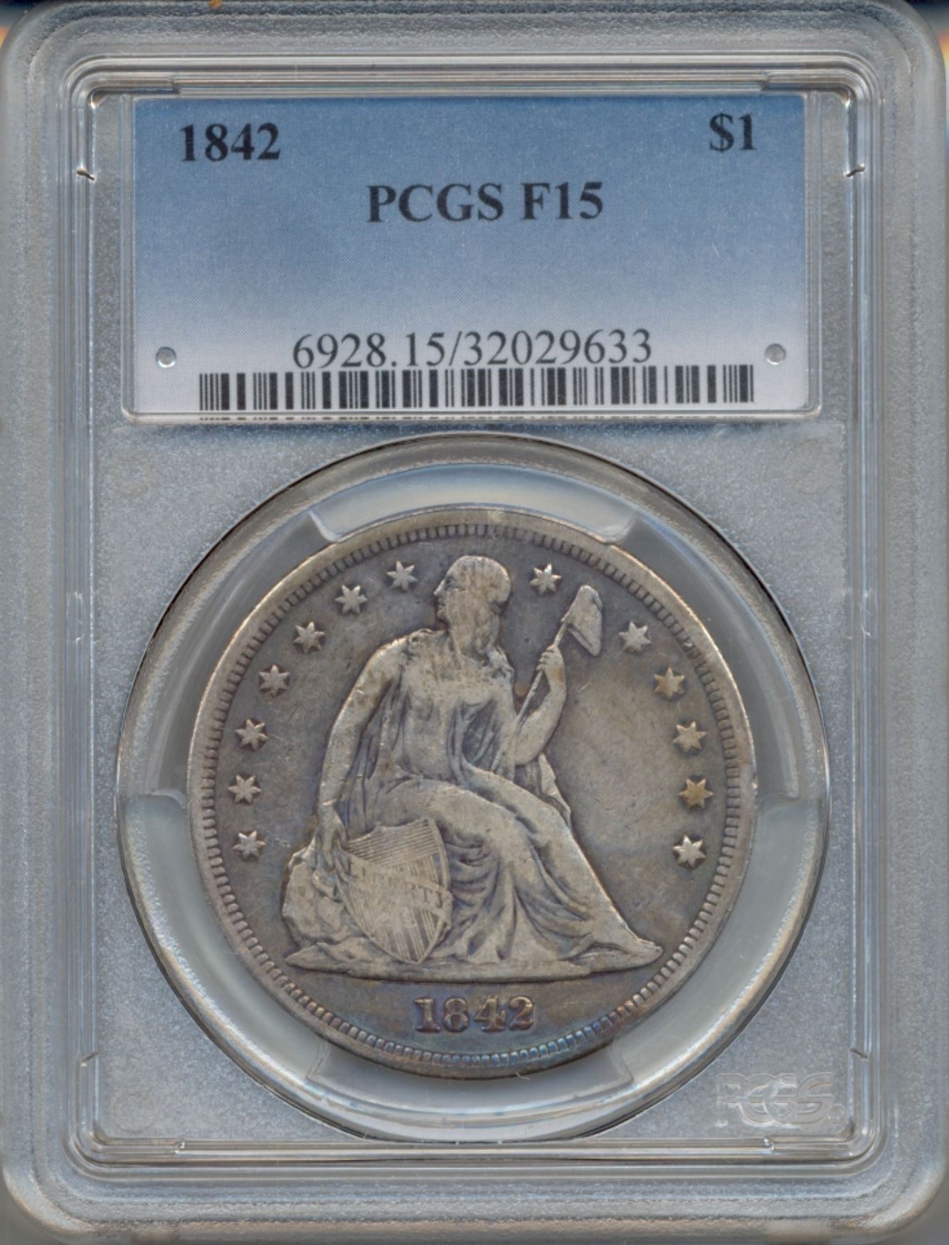 One 1842 $1 Seated Dollar Coin PCGS F15.