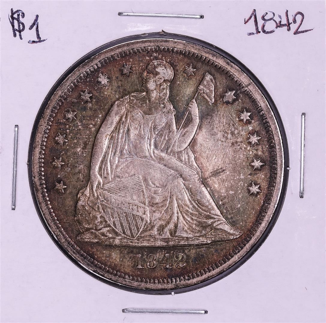 One 1842 $1 Seated Liberty Silver Dollar Coin.