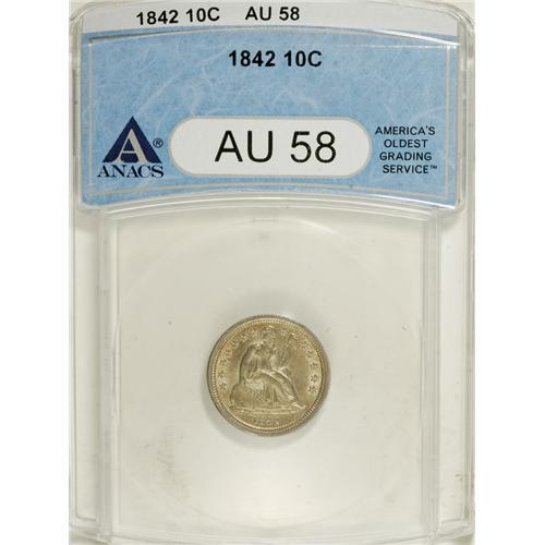 1842 10C AU58 ANACS. Greer rates this issue very scarc