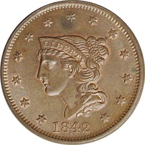 1842 1C Large Date MS64 Brown NGC. N-7, R.2. Although 1842[1C] Large Date. N-7, R.2. MS64 Brown NGC.
