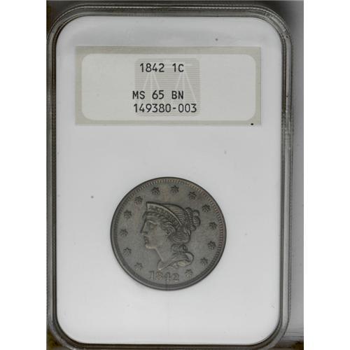 1842 1C Large Date MS65 Brown NGC. N-4, R.2. Identifia 1842