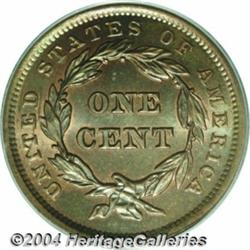 <table><tr><td><table><tr><td>1842 1C Large Date MS66 Red and Brown PCGS. N-8, R.1. A diagonal point (as struck) from the upper right foot of the N in ONE attributes the variety. The Large Date is readily distinguished from its Small Date counterpart, since the 4 in the date has a crosslet on the former and is plain on the latter. This well struck and splendidly preserved Gem has substantial original crimson color on each side, while the exposed fields and portrait have lilac color on the obverse and olive hues on the reverse. <BR><BR><B>Important notice:</B> Heritage usually auctions material at the rate of 200-250 lots per hour. On some occasions eBay Live bid software or the Internet may not be able to keep up with the pace of the auction. We recommend placing a realistic absentee bid now as insurance to avoid disappointment. Occasionally the auctioneer may eliminate or reject an eBay Live bid, and the auctioneer may also reopen a lot after the close of the eBay live bidding (usually because we missed an audience bid), and may reject your bid even if it shows you as the winning bidder. By bidding via eBay Live, you agree that Heritage may award the lot to another bidder at its sole discretion under the circumstances described above or any other reasonable circumstances. Since eBay bids are not shown to us until we open the lot on the floor, we treat those bids just like floor bids. In most cases the floor responds before the eBay bid is presented to us, due to Internet lag time, so for consistency we have made it a policy that floor bids are always considered first over tie eBay live bids. Also please note that all Heritage lots purchased through eBay Live carry a 20% Buyer's Premium. Please make sure you read the Terms and Conditions before you bid. <BR><BR><B>IMPORTANT ANNOUNCEMENT ABOUT RESERVES:</B> Heritage now divulges all reserves on its web site 7 days before every auction. If you want to know whether the reserve on this lot has been met, and if not, what the reserve amount is, please visit this lot page on the HeritageCoin.com web site, or email: bid@HeritageGalleries.com </span></font></td></tr></table></td></tr></table>