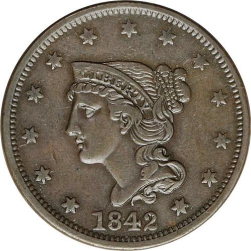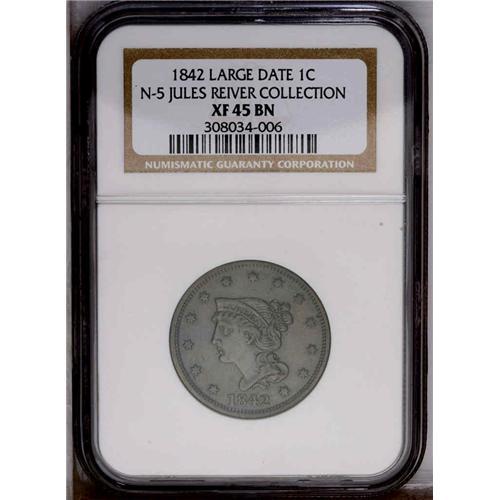 1842 1C Large Date XF45 NGC. N-5, R.3. 1842[1C] Large Date. N-5, R.3. XF45 NGC. VF20 EAC.