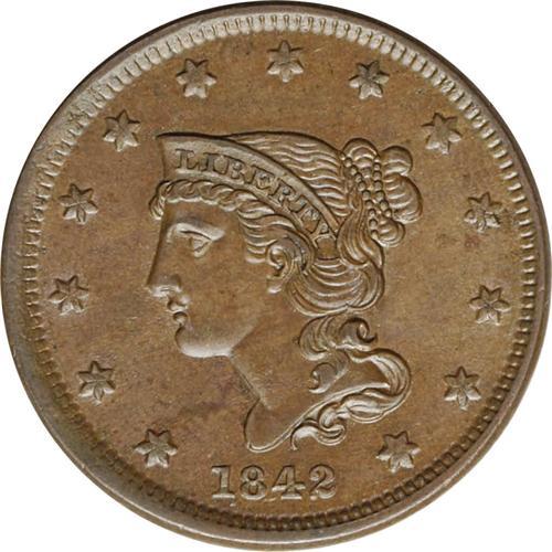 1842 1C Small Date MS63 Brown NGC. N-2, R.1. A beautif 1842[1C] Small Date. N-2, R.1. MS63 Brown NGC