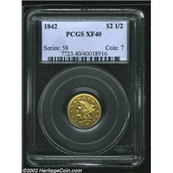 1842 $2 1/2 XF40 PCGS. The 1842 is one of those dates that doesn't stick in the mind as a standout r