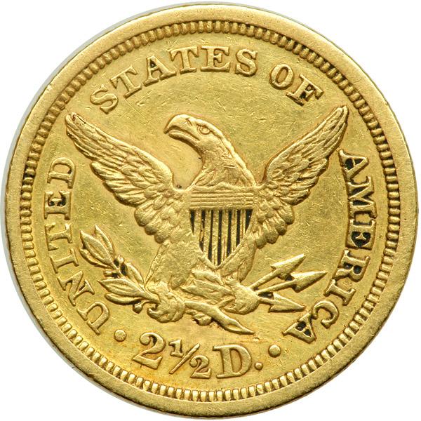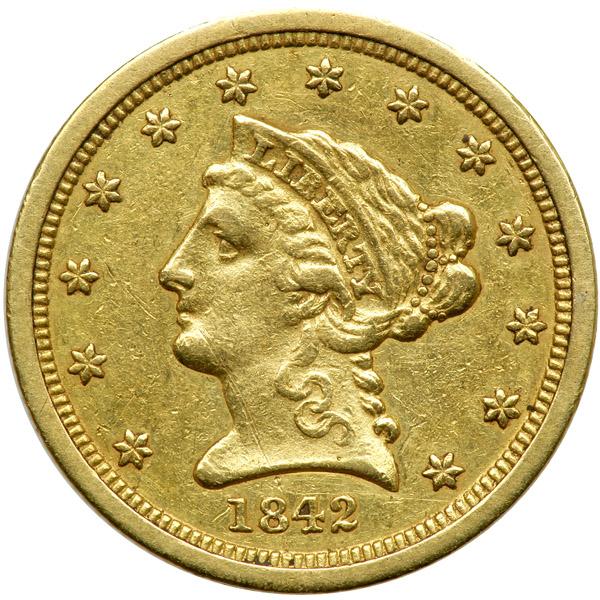 1842. Sharpness of EF-40. We note some fine old cleaning scratches. Although overshadowed by the 1841-P quarter eagle, the 1842 is scarce in its own right: Only 2,823 struck.