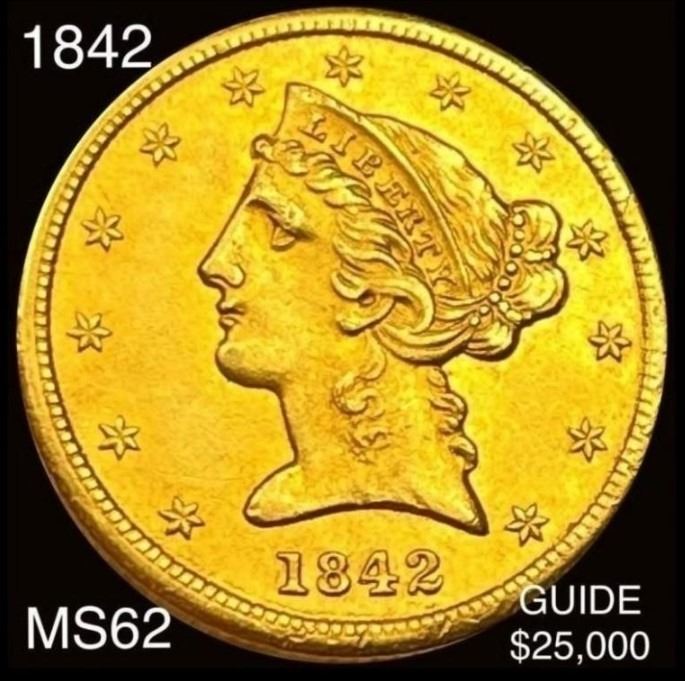 1842 $5 Gold Half Eagle UNCIRCULATED