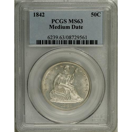 1842 50C Medium Date, Large Letters MS63 PCGS. Select
