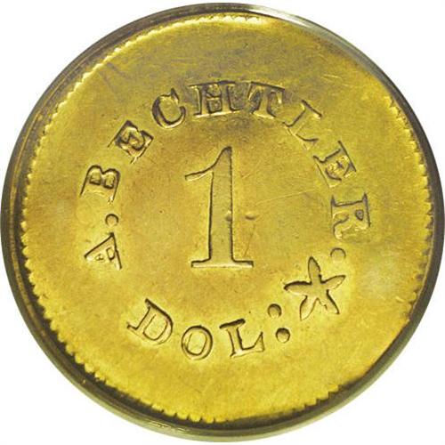 (1842-52) G$1 A.Bechtler Dollar, 27G. 21C.--Double Cli