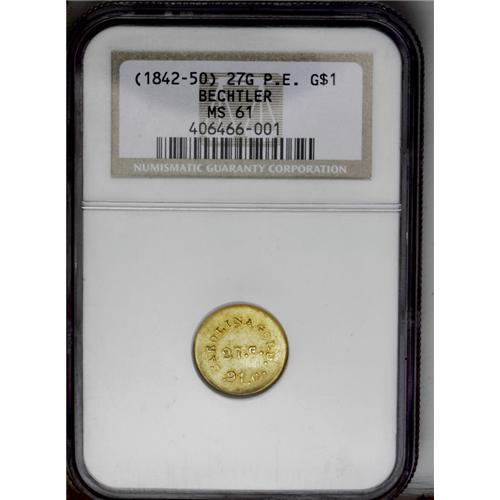 (1842-52) G$1 A.Bechtler Dollar, 27G. 21C. MS61 NGC. K (1842-52)