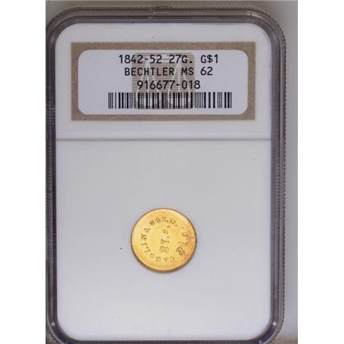 (1842-52) G$1 A.Bechtler Dollar, 27G. 21C. MS62 NGC. K