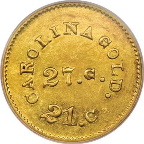<B>(1842-52) G$1 A. Bechtler Dollar, 27G. 21C. MS62 PCGS.</B></I> K-24, R.3. Orange-rose shades enrich this lovely and evenly struck Bechtler type coin. A superficial examination fails to locate noticeable contact, but a thin mark is present on the denomination side border between 3 and 6 o'clock. Listed on page 350 of the 2008 <I>Guide Book.</B></I> Population: 10 in 62, 6 finer (6/07).<BR><I>From The Stephen L. Schechter Collection of Bechtler Territorial Gold.</B></I><BR><BR><b>Shipping:</b> Coins & Currency (<a target="_blank" href="http://www.heritageauctions.com/common/shipping.php">view shipping information</a>)