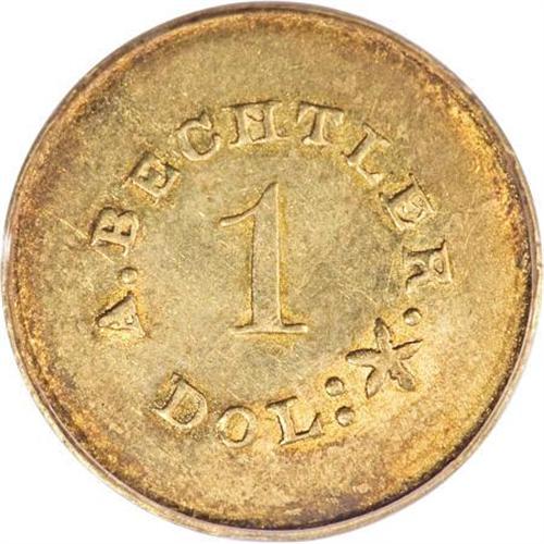 (1842-52) G$1 A. Bechtler Dollar, 27G. 21C. MS62