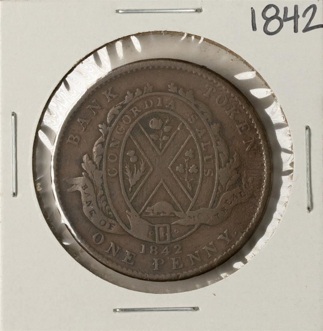 One 1842 Bank of Montreal Province of Canada Penny Coin.