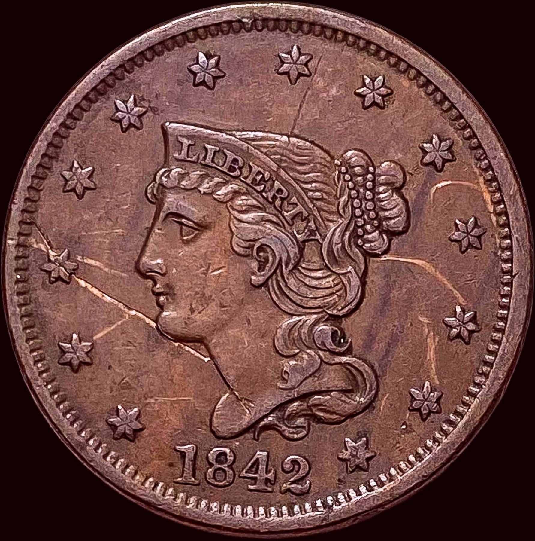 1842 Braided Hair Large Cent CLOSELY UNCIRCULATED