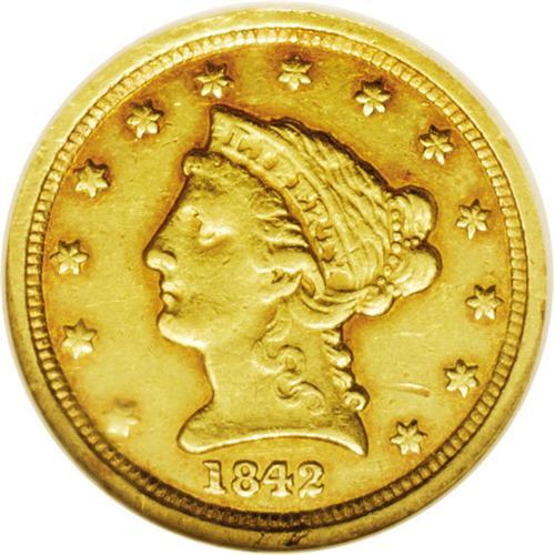 1842-C $2 1/2 AU55 NGC. Variety 3-B. Just 6,729 pieces 1842-C[$2 1/2] AU55 NGC.
