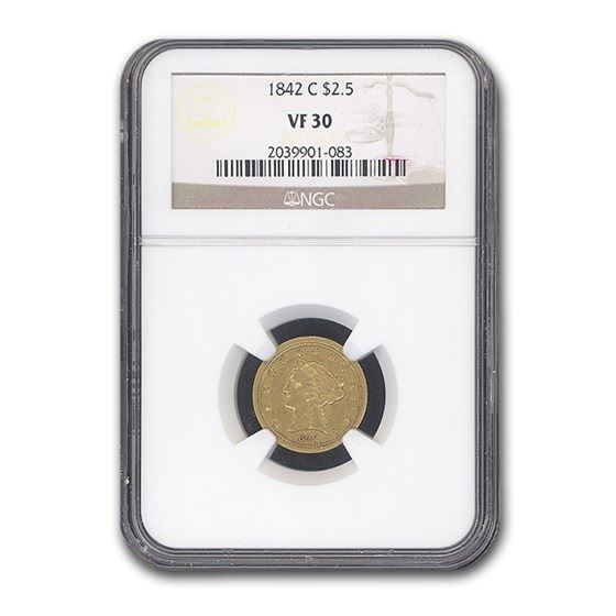 One piece 1842-C $2.50 Liberty Gold Quarter Eagle VF-30 NGC