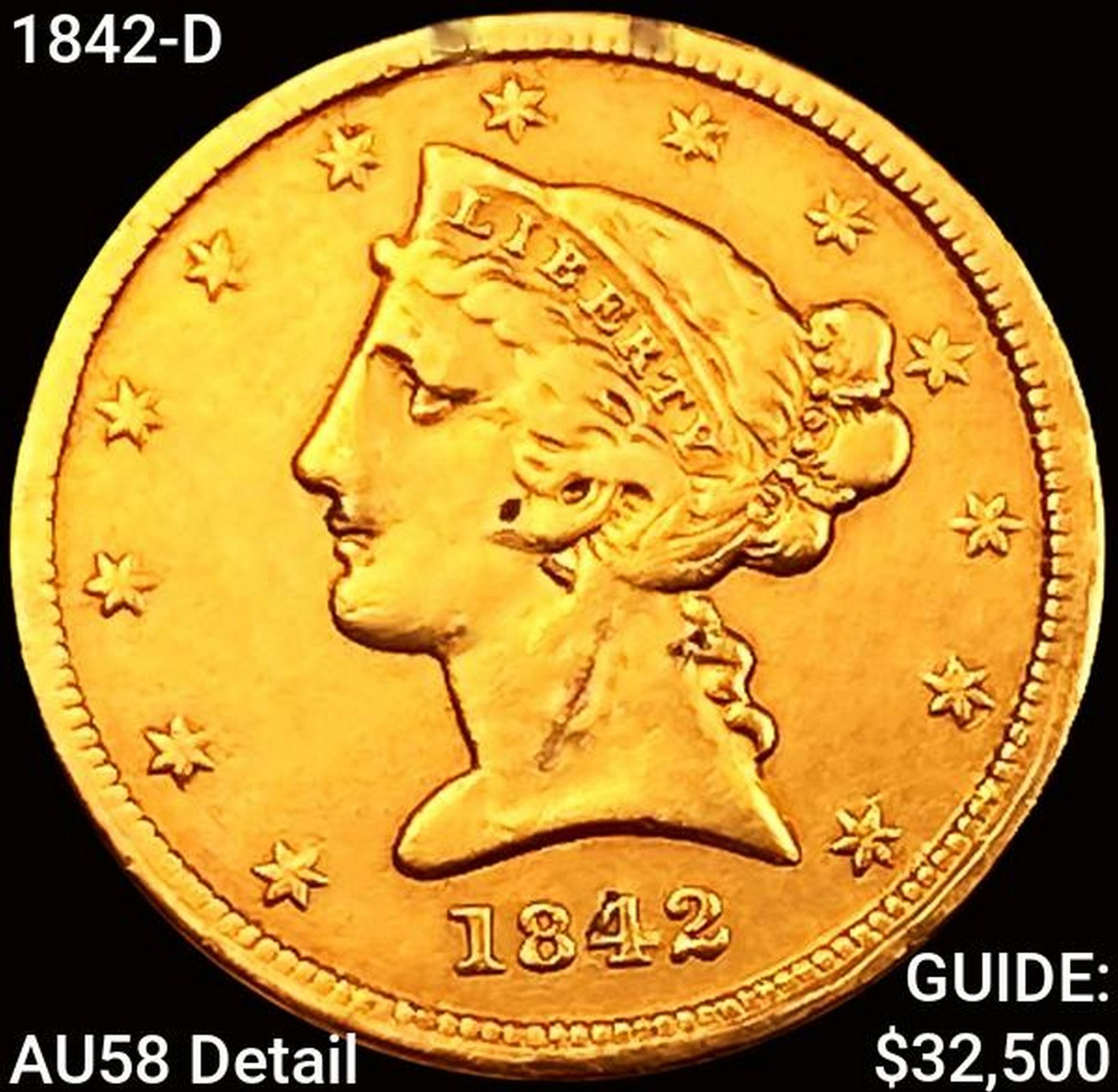 1842-D $5 Gold Half Eagle CHOICE AU