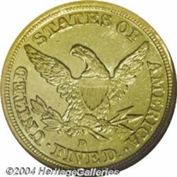 <table><tbody><tr><td><table> <TR><TD width="100%"><TABLE cellSpacing=1 cellPadding=3 width="100%" border=0><TBODY><TR><TD width="100%" bgColor=#79735c><FONT face=arial color=#ffffff size=3><B>Description</B> </FONT></TD></TR><TR><TD width="100%" bgColor=#ffffff><FONT face=arial size=2><B>1842-D $5 Large Date AU58 NGC.</B></I> Large Date and Letters. Variety 9-G. (per Doug Winter's second edition and revised attribution system). Reverse of 1842. The only die variety known for this issue. The mintage reported for this issue was 21,691 pieces; however, it is very likely this is incorrect as an unusually small percentage of that mintage has survived today. In all grades only 85-95 pieces are believed known, most of which are in the VF-XF grade range. In AU a mere seven to nine pieces are believed extant today, this surely being one of the finest if not the finest. Mint State pieces are prohibitively rare with only two examples known today. This coin is reasonably well struck with bright green-gold surfaces. A number of small abrasions are scattered over each side, the only ones of note being an angling mark in the left obverse field in front of the mouth of Liberty and a small planchet flaw by star 3. </FONT></TD></TR></TBODY></TABLE></TD></TR></TBODY></TABLE><BR><A name=PricesRealized></A><TABLE cellSpacing=0 cellPadding=0 width="100%" bgColor=#000000 border=0><TBODY><TR><TD width="100%"><TABLE cellSpacing=1 cellPadding=3 width="100%" border=0><TBODY><TR><TD width="100%" bgColor=#79735c><A name=PR><FONT face=arial color=#ffffff size=3><B>Previous Prices from Heritage Auctions</B> </FONT></A></TD></TR><TR><TD bgColor=#f6f6ed><TABLE cellSpacing=0 cellPadding=0 width="100%" border=1><TBODY><TR><TD align=middle width="33%"><B>Date</B></TD><TD align=middle width="33%"><B>Service</B></TD><TD align=middle width="33%"><B>Price</B></TD></TR><TR bgColor=whitesmoke><TD width="33%"><B>01/11/2003</B></TD><TD width="33%">NGC</TD><TD width="33%">$19,550.00</TD></TR><TR bgColor=whitesmoke><TD width="33%"><B>01/08/1999</B></TD><TD width="33%">PCGS</TD><TD width="33%">$36,800.00</TD></TR></TBODY></TABLE></TD></TR><TR><TD bgColor=#ffffff><FONT face=arial size=1 ?>PLEASE NOTE: All prices realized reflect the final hammer price PLUS the buyer's premium in auctions that charge a buyer's premium. Each item has a notation at the top of the listing indicating whether that lot included a buyer's premium. Example: A item that sells with a final hammer price of $100 and a 20% buyer's premium will display with a price realized of $120. All information listed is intended to be as accurate as possible, but errors are possible. Please use this guide carefully and inform us of any inaccuracies. </FONT></TD></TR></TBODY></TABLE></TD></TR></TBODY></TABLE><BR><TABLE cellSpacing=0 cellPadding=0 width="100%" bgColor=#000000 border=0><TBODY><TR><TD width="100%"><TABLE cellSpacing=1 cellPadding=3 width="100%" border=0><TBODY><TR><TD width="100%" bgColor=#79735c colSpan=6><FONT face=arial color=#ffffff size=3><B>Price Guide*</B> </FONT></TD></TR><TR bgColor=#f6f6ed><TD align=middle><B>Grade</B> </TD><TD align=middle><B>Coin World<BR>(Trends)</B> </TD><TD align=middle><B>Numismedia<BR>Retail</B> </TD><TD align=middle><B>Numismedia<BR>Wholesale</B> </TD><TD align=middle><B>Coin<BR>Universe</B> </TD><TD align=middle><B>Heritage<BR>Value Index</B> </TD></TR><TR bgColor=#ffffff><TD align=middle>55</TD><TD align=right>$25,000.00</TD><TD align=right>---</TD><TD align=right>$18,500.00</TD><TD align=right>---</TD><TD align=right>$18,762.50</TD></TR><TR style="FONT-WEIGHT: bold" bgColor=#cccfdd><TD align=middle>58</TD><TD align=right>$35,000.00</TD><TD align=right>---</TD><TD align=right>$19,550.00</TD><TD align=right>---</TD><TD align=right>$25,705.00</TD></TR><TR bgColor=#ffffff><TD align=middle>60</TD><TD align=right>$50,000.00</TD><TD align=right>---</TD><TD align=right>---</TD><TD align=right>---</TD><TD align=right>$33,250.00</TD></TR><TR bgColor=#ffffff><TD colSpan=6><FONT size=1>*All information listed is intended to be as accurate as possible, but errors are possible. No item may be returned or refused based on this information which is provided as a service to our customers. You should contact each pricing source directly to determine the accuracy of this information. </FONT></TD></TR></TBODY></TABLE></TD></TR></TBODY></TABLE><BR><TABLE cellSpacing=0 cellPadding=0 width="100%" bgColor=#000000 border=0><TBODY><TR><TD width="100%"><TABLE cellSpacing=1 cellPadding=3 width="100%" border=0><TBODY><TR><TD width="100%" bgColor=#79735c><FONT face=arial color=#ffffff size=3><B>Population Guide</B> </FONT></TD></TR><TR bgColor=#ffffff><TD align=middle><!-- Begin Output of Population Grid--><TABLE cellSpacing=0 cellPadding=0 width="100%" border=0><TBODY><TR><TD vAlign=center><TABLE cellSpacing=0 width="100%" border=1 cellsadding="3"><TBODY><TR><TD vAlign=center><TABLE cellSpacing=0 cellPadding=3 width="100%" border=1><TBODY><TR><TD vAlign=center align=middle bgColor=#f0f1e8 colSpan=2 <CENTER><FONT face=Arial size=2><B>PCGS Pop </B></FONT><CENTER></CENTER></TD><TD vAlign=center align=middle bgColor=#f0f1e8 colSpan=2><CENTER><FONT face=Arial size=2><B>NGC Pop</B></CENTER></FONT></TD></TR><TR><TD vAlign=center><FONT face=Arial size=2>(58)</FONT> </TD><TD vAlign=center align=right><FONT face=Arial size=2>2</FONT> </TD><TD vAlign=center><FONT face=Arial size=2>(58)</FONT> </TD><TD vAlign=center align=right><FONT face=Arial size=2>3</FONT> </TD></TR><TR><TD vAlign=center><FONT face=Arial size=2>(>58)</FONT> </TD><TD vAlign=center align=right><FONT face=Arial size=2>1</FONT> </TD><TD vAlign=center><FONT face=Arial size=2>(>58)</FONT> </TD><TD vAlign=center align=right><FONT face=Arial size=2>0</FONT> </TD></TR></TBODY></TABLE></TD></TR></TBODY></TABLE></TD></TR></TBODY></TABLE><!-- End Output of Population Grid--></TD></TR></TBODY></TABLE></TD></TR></TBODY></TABLE><BR><TABLE cellSpacing=0 cellPadding=0 width="100%" bgColor=#000000 border=0><TBODY>