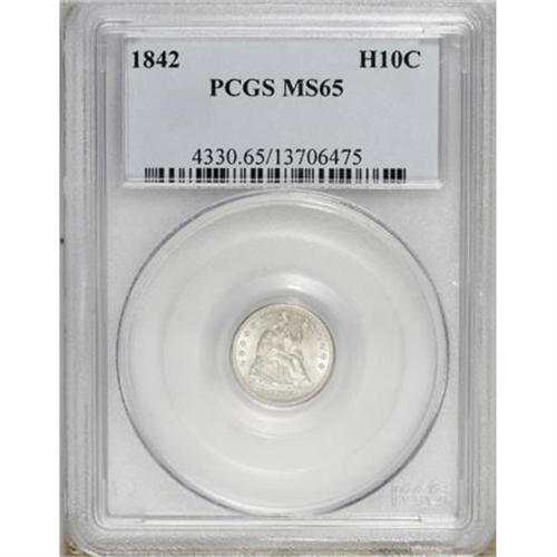 <B>1842 H10C MS65 PCGS.</B></I> Delicate tan toning visits this sharply struck and thoroughly lustrous Gem. No marks are consequential, and only a handful of pieces are certified finer. Population: 7 in 65, 3 finer (11/07).<BR><BR><B>Coin Engraver:</B> Christian Gobrecht<BR><BR><b>Shipping:</b> Coins & Currency (<a target="_blank" href="http://www.heritageauctions.com/common/shipping.php">view shipping information</a>)