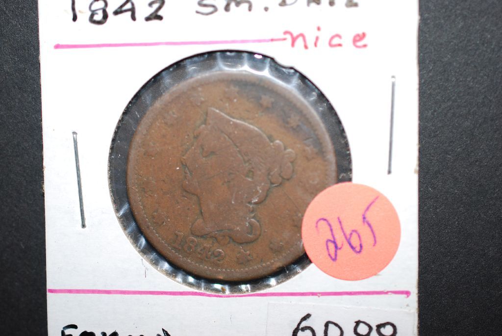 1842 Large One Cent; Small Date; EST. $80-100