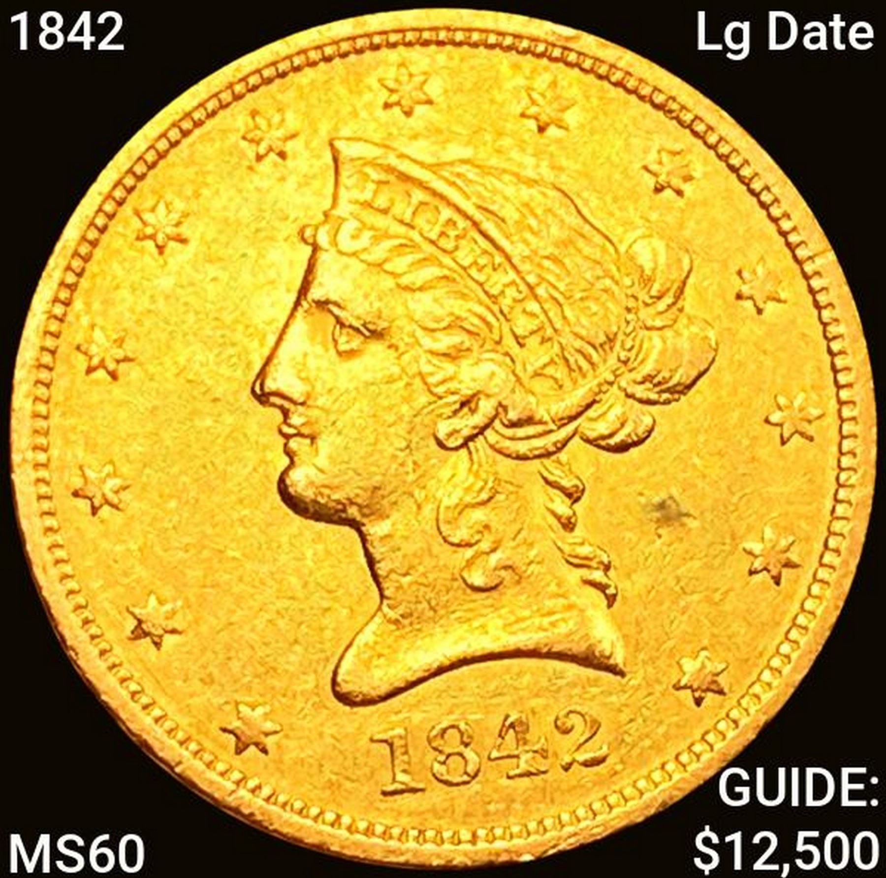 1842 Lg Date $10 Gold Eagle UNCIRCULATED