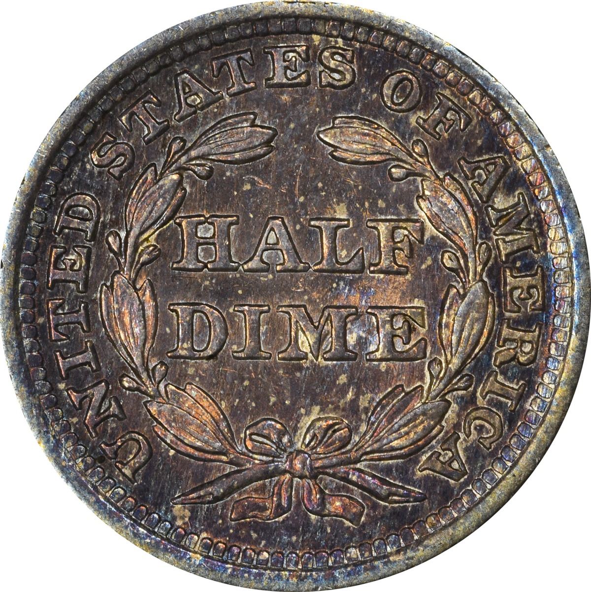 This attractively toned specimen offers prooflike fields beneath the colorful toning arrays on both sides. The obverse is a blend of electric blue and crimson, while the reverse offers fiery sunset-orange with trace whispers of blue. The devices are as sharp as ever seen for the design type. Struck from a clashed reverse die. Choice for the grade.