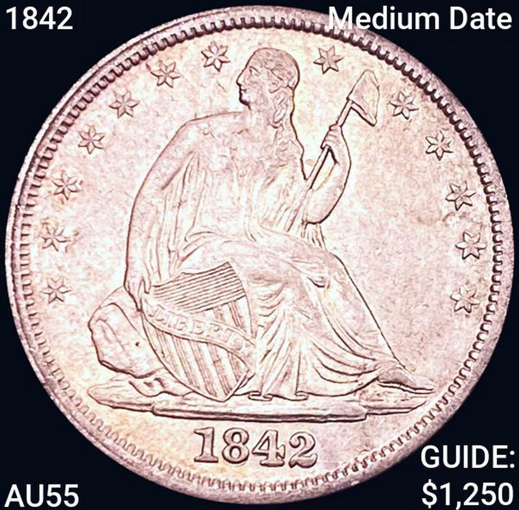 1842 Med Date Seated Lib 1/2 Dollar CLOSELY UNC