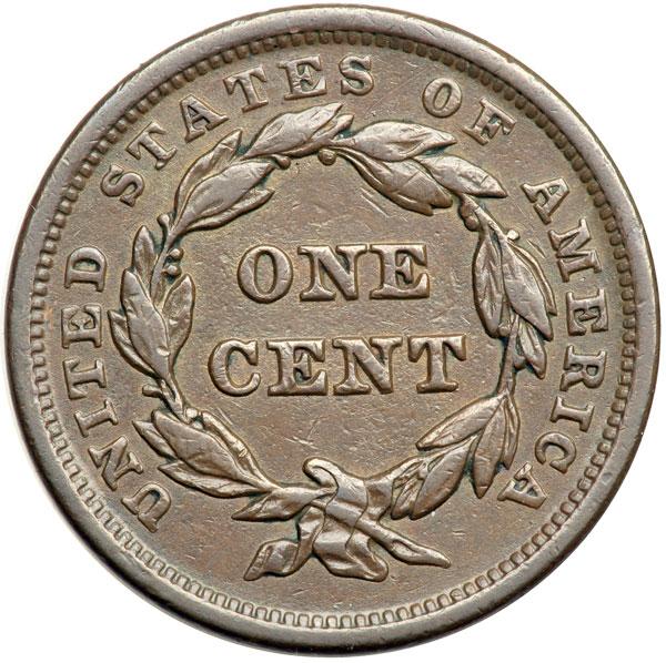 1842 N-4 R2 VF25. Slightly sharper with too many light nicks on the obverse for the higher grade, including a small pinprick just left of the peak of the 1. Glossy medium brown. E-MDS, die state a late. The die lines over MERI are weak but visible. DWH #0894.