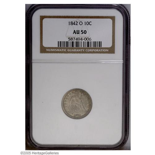 1842-O 10C AU50 NGC. Medium-gray color with no signifi 1842-O[10C] AU50 NGC.