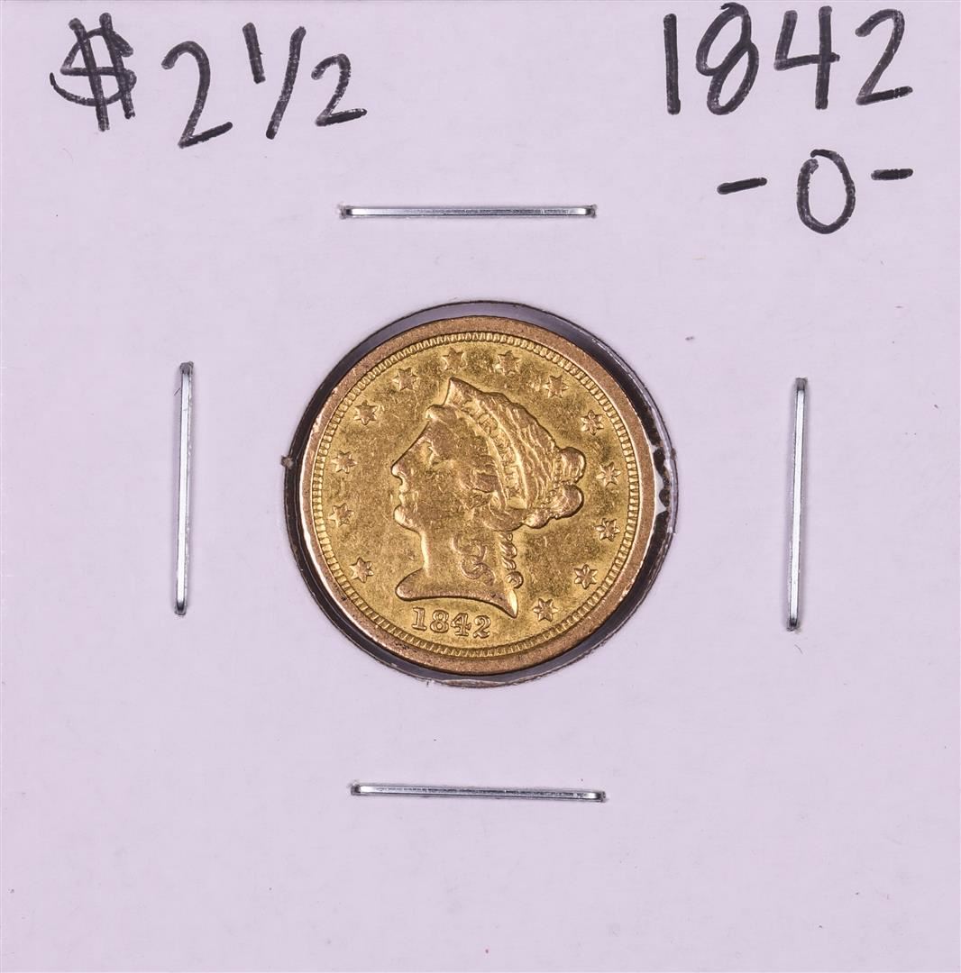 One 1842 O $2 1/2 Liberty Head Quarter Eagle Gold Coin.
