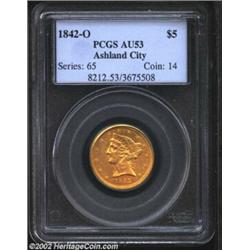 1842-O $5 AU53 PCGS. The 1842-O is one of the rarest of all New Orleans Half Eagles. Winter estimate