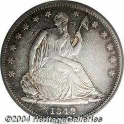 <table><tr><td><TABLE cellSpacing=0 cellPadding=0 width="100%" bgColor=#000000 border=0><TBODY> <TR><TD width="100%"><TABLE cellSpacing=1 cellPadding=3 width="100%" border=0><TBODY><TR><TD width="100%" bgColor=#79735c><FONT face=arial color=#ffffff size=3><B>Description</B> </FONT></TD></TR><TR><TD width="100%" bgColor=#ffffff><FONT face=arial size=2><B>1842-O 50C Small Date, Reverse of 1841 XF40 PCGS.</B></I> The 1842-O Small Date Half Dollar is a significant rarity in all grades. The <I>Guide Book</B></I> reports a mintage of 203,000 pieces, but the small number of survivors suggests that most of this production was melted by the New Orleans Mint, or may in fact have been the much more available 1842-O Medium Date, Large Letters variety. The 1842-O Small Date bears the Small Letters Reverse used between 1839 and 1841. This moderately abraded and bright example has a crisp strike and considerable remaining luster. Golden-brown, sea-green, and russet borders cede to slate-gray fields. The older green label PCGS holder has a vertical crack on its reverse, but this in no manner affects the preservation of the coin itself. Population: 3 in 40, 9 finer (10/03). </FONT></TD></TR></TBODY></TABLE></TD></TR></TBODY></TABLE><BR><A name=PricesRealized></A><TABLE cellSpacing=0 cellPadding=0 width="100%" bgColor=#000000 border=0><TBODY><TR><TD width="100%"><TABLE cellSpacing=1 cellPadding=3 width="100%" border=0><TBODY><TR><TD width="100%" bgColor=#79735c><A name=PR><FONT face=arial color=#ffffff size=3><B>Previous Prices from Heritage Auctions</B> </FONT></A></TD></TR><TR><TD bgColor=#f6f6ed><TABLE cellSpacing=0 cellPadding=0 width="100%" border=1><TBODY><TR><TD align=middle width="33%"><B>Date</B></TD><TD align=middle width="33%"><B>Service</B></TD><TD align=middle width="33%"><B>Price</B></TD></TR><TR bgColor=whitesmoke><TD width="33%"><B>02/02/1996</B></TD><TD width="33%">PCGS</TD><TD width="33%">$3,080.00</TD></TR></TBODY></TABLE></TD></TR><TR><TD bgColor=#ffffff><FONT face=arial size=1 ?>PLEASE NOTE: All prices realized reflect the final hammer price PLUS the buyer's premium in auctions that charge a buyer's premium. Each item has a notation at the top of the listing indicating whether that lot included a buyer's premium. Example: A item that sells with a final hammer price of $100 and a 20% buyer's premium will display with a price realized of $120. All information listed is intended to be as accurate as possible, but errors are possible. Please use this guide carefully and inform us of any inaccuracies. </FONT></TD></TR></TBODY></TABLE></TD></TR></TBODY></TABLE><BR><TABLE cellSpacing=0 cellPadding=0 width="100%" bgColor=#000000 border=0><TBODY><TR><TD width="100%"><TABLE cellSpacing=1 cellPadding=3 width="100%" border=0><TBODY><TR><TD width="100%" bgColor=#79735c colSpan=6><FONT face=arial color=#ffffff size=3><B>Price Guide*</B> </FONT></TD></TR><TR bgColor=#f6f6ed><TD align=middle><B>Grade</B> </TD><TD align=middle><B>Coin World<BR>(Trends)</B> </TD><TD align=middle><B>Numismedia<BR>Retail</B> </TD><TD align=middle><B>Numismedia<BR>Wholesale</B> </TD><TD align=middle><B>Coin<BR>Universe</B> </TD><TD align=middle><B>Heritage<BR>Value Index</B> </TD></TR><TR bgColor=#ffffff><TD align=middle>35</TD><TD align=right>---</TD><TD align=right>---</TD><TD align=right>---</TD><TD align=right>---</TD><TD align=right>$2,162.19</TD></TR><TR style="FONT-WEIGHT: bold" bgColor=#cccfdd><TD align=middle>40</TD><TD align=right>$4,500.00</TD><TD align=right>---</TD><TD align=right>$3,450.00</TD><TD align=right>$2,600.00</TD><TD align=right>$2,556.67</TD></TR><TR bgColor=#ffffff><TD align=middle>45</TD><TD align=right>---</TD><TD align=right>---</TD><TD align=right>---</TD><TD align=right>---</TD><TD align=right>$4,016.67</TD></TR><TR bgColor=#ffffff><TD colSpan=6><FONT size=1>*All information listed is intended to be as accurate as possible, but errors are possible. No item may be returned or refused based on this information which is provided as a service to our customers. You should contact each pricing source directly to determine the accuracy of this information. </FONT></TD></TR></TBODY></TABLE></TD></TR></TBODY></TABLE><BR><TABLE cellSpacing=0 cellPadding=0 width="100%" bgColor=#000000 border=0><TBODY><TR><TD width="100%"><TABLE cellSpacing=1 cellPadding=3 width="100%" border=0><TBODY><TR><TD width="100%" bgColor=#79735c><FONT face=arial color=#ffffff size=3><B>Population Guide</B> </FONT></TD></TR><TR bgColor=#ffffff><TD align=middle><!-- Begin Output of Population Grid--><TABLE cellSpacing=0 cellPadding=0 width="100%" border=0><TBODY><TR><TD vAlign=center><TABLE cellSpacing=0 width="100%" border=1 cellsadding="3"><TBODY><TR><TD vAlign=center><TABLE cellSpacing=0 cellPadding=3 width="100%" border=1><TBODY><TR><TD vAlign=center align=middle bgColor=#f0f1e8 colSpan=2 <CENTER><FONT face=Arial size=2><B>PCGS Pop </B></FONT><CENTER></CENTER></TD><TD vAlign=center align=middle bgColor=#f0f1e8 colSpan=2><CENTER><FONT face=Arial size=2><B>NGC Pop</B></CENTER></FONT></TD></TR><TR><TD vAlign=center><FONT face=Arial size=2>(40)</FONT> </TD><TD vAlign=center align=right><FONT face=Arial size=2>3</FONT> </TD><TD vAlign=center><FONT face=Arial size=2>(40)</FONT> </TD><TD vAlign=center align=right><FONT face=Arial size=2>4</FONT> </TD></TR><TR><TD vAlign=center><FONT face=Arial size=2>(>40)</FONT> </TD><TD vAlign=center align=right><FONT face=Arial size=2>9</FONT> </TD><TD vAlign=center><FONT face=Arial size=2>(>40)</FONT> </TD><TD vAlign=center align=right><FONT face=Arial size=2>8</FONT> </TD></TR></TBODY></TABLE></TD></TR></TBODY></TABLE></TD></TR></TBODY></TABLE><!-- End Output of Population Grid--></TD></TR></TBODY></TABLE></TD></TR></TBODY></TABLE><BR><TABLE cellSpacing=0 cellPadding=0 width="100%" bgColor=#000000 border=0><TBODY><TR> <font color='#000000'><span style='background-color: #FFFFFF'><td bgcolor='#FFFFFE'> Important notice: Heritage usually auctions material at the rate of 200-250 lots per hour. On 