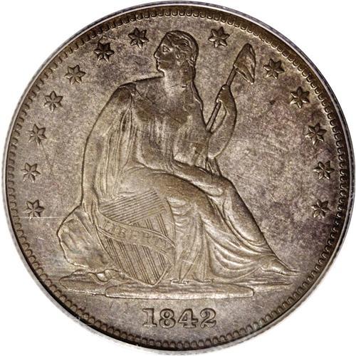 <B>1842-O 50C Small Date, Small Letters XF40 PCGS.</B></I> WB-101. This variety is distinguished by the beginnings of the die crack between the AL in HALF. Curiously, these pieces were struck before the 1841-O halves. All examples are softly struck. This piece shows even, dark gray-blue toning over each side. A few field marks are present, but are not significant enough to merit individual mention.<BR><BR><b>Shipping:</b> Coin/Currency (<a target="_blank" href="http://www.heritageauctions.com/common/shipping.php">view shipping information</a>)