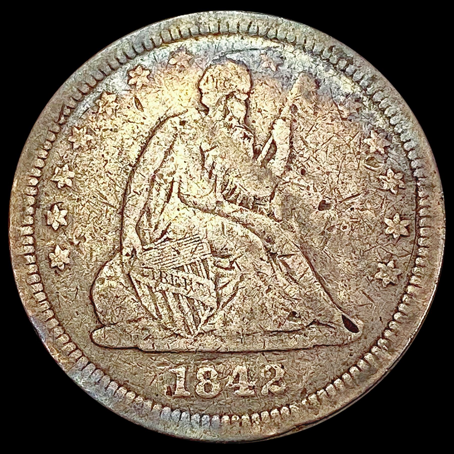 1842-O Lg Date Seated Liberty Quarter NICELY CIRCULATED