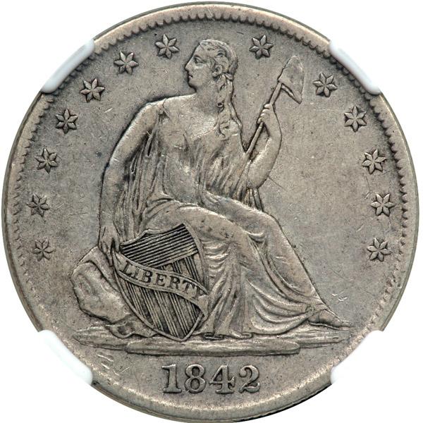 1842-O. Medium date (reverse of 1842). NGC graded EF-40. Even gray toning.