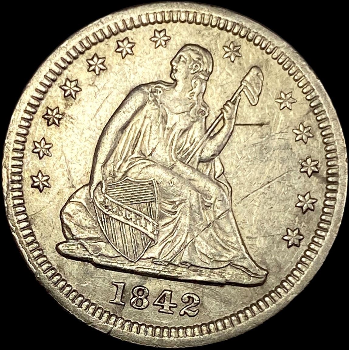1842-O Silver Seated Liberty Quarter CLOSELY UNCIRCULATED