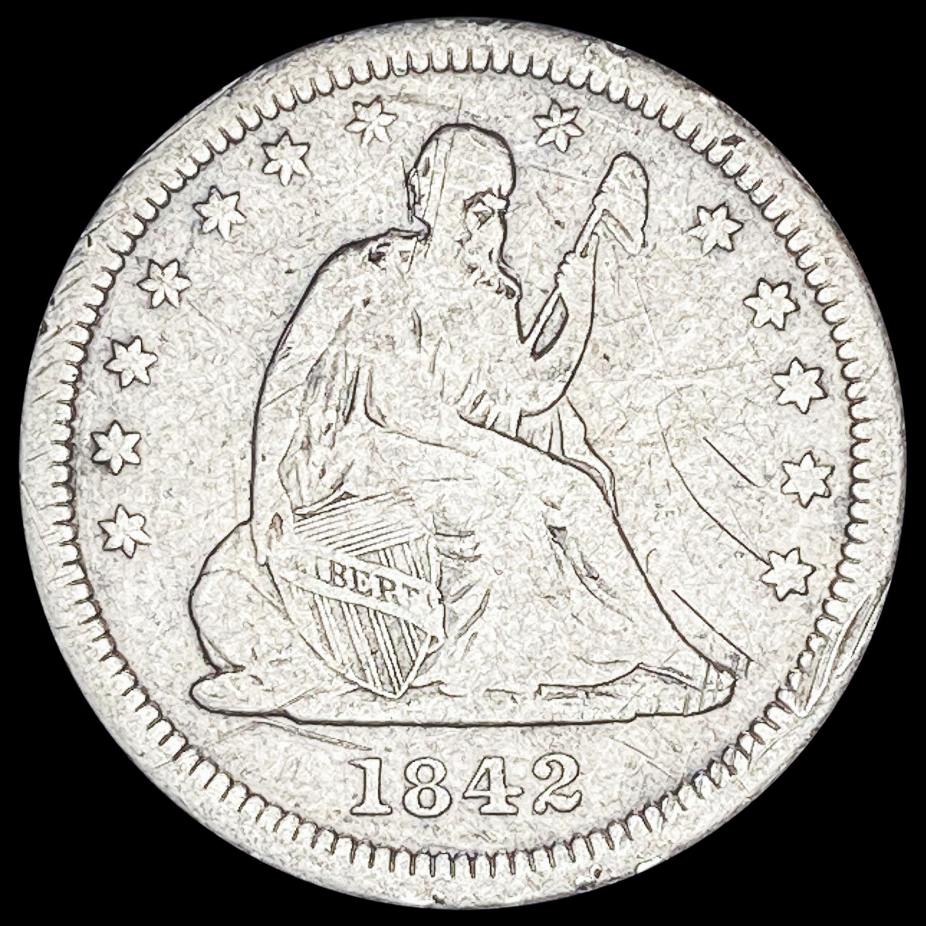 1842-O Silver Seated Liberty Quarter NICELY CIRCULATED