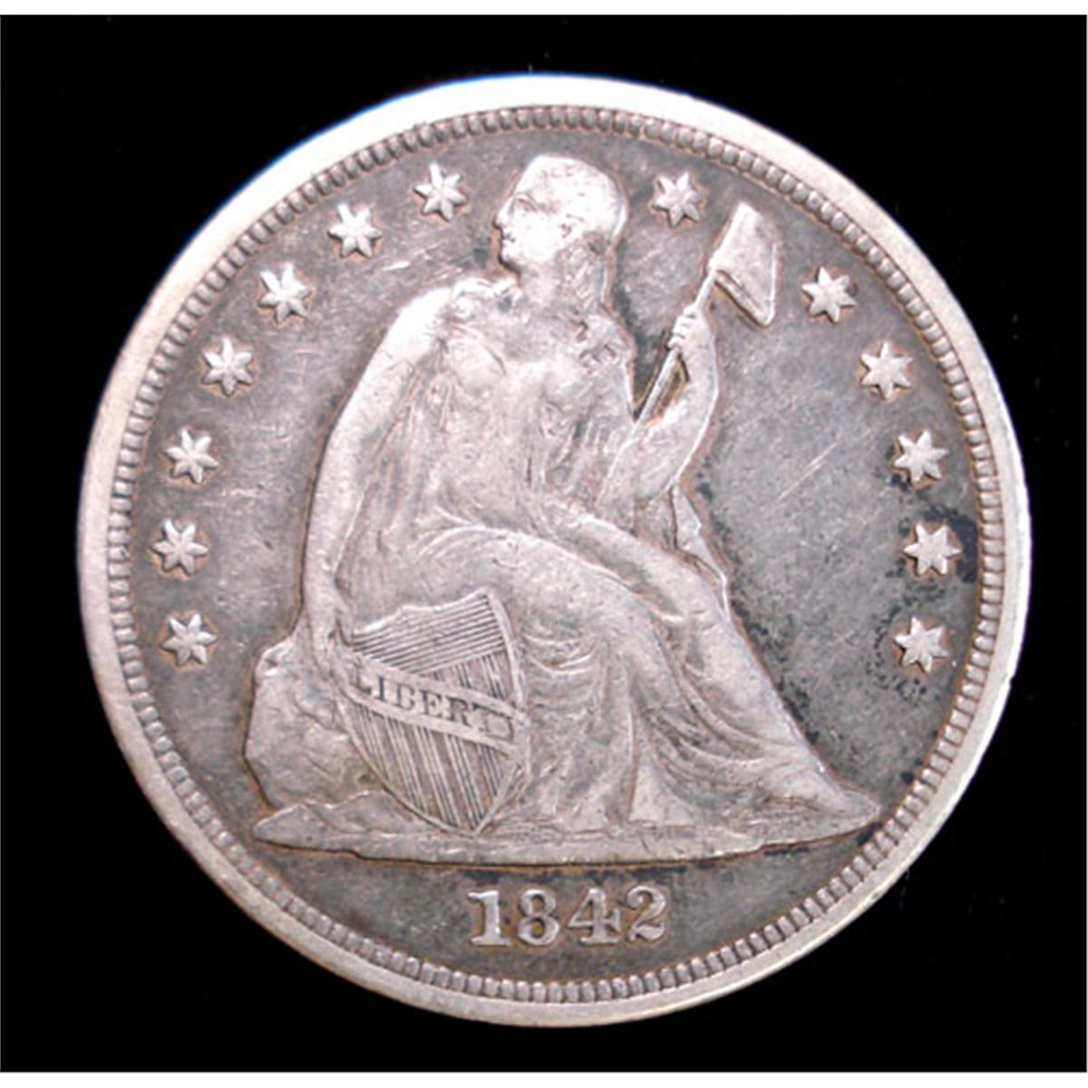 1842 SEATED LIBERTY SILVER DOLLAR, NICE XF ( ALL ORIGINAL )