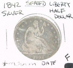 1842 SEATED LIBERTY SILVER HALF DOLLAR MEDIUM DATE *RARE FINE GRADE* HARD TO FIND COIN!! ***Coin & Currency Grades, Conditions and Values are not Northern Colorado Estate Liquidators Responsibilty. Grades, Condition and Values are determined by Consigner(s) & Buyers ONLY***