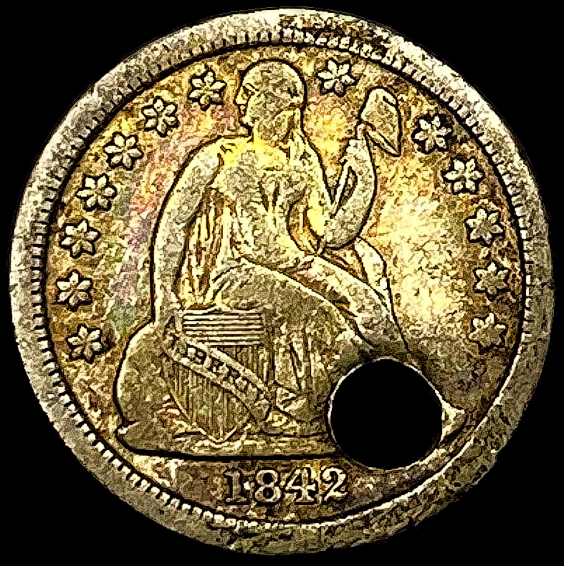 1842 Seated Liberty Dime (holed) HIGH GRADE