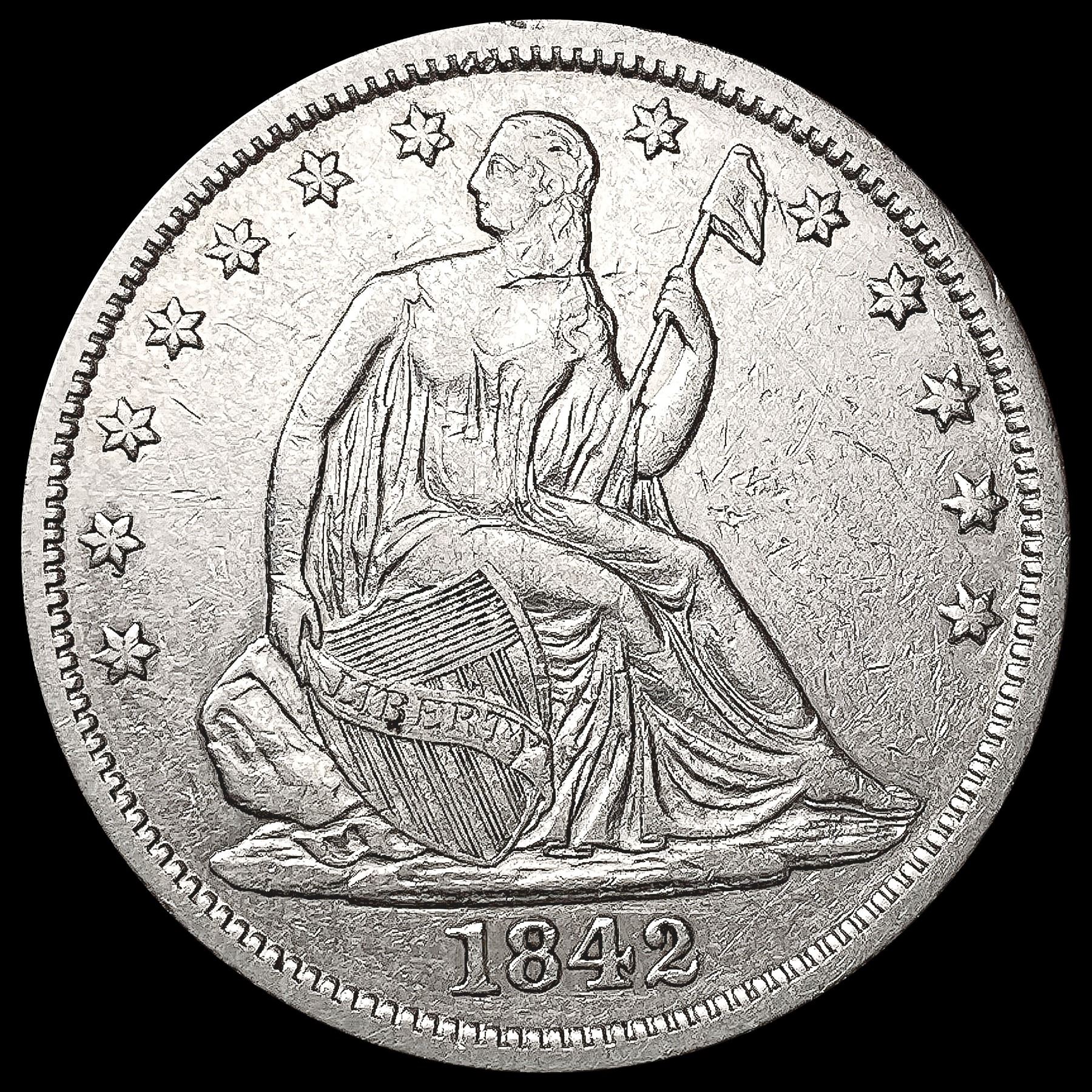 1842 Seated Liberty Half Dollar CLOSELY UNCIRCULAT