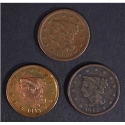 1842 XF CLEANED, 1843 FINE, 1847 FINE