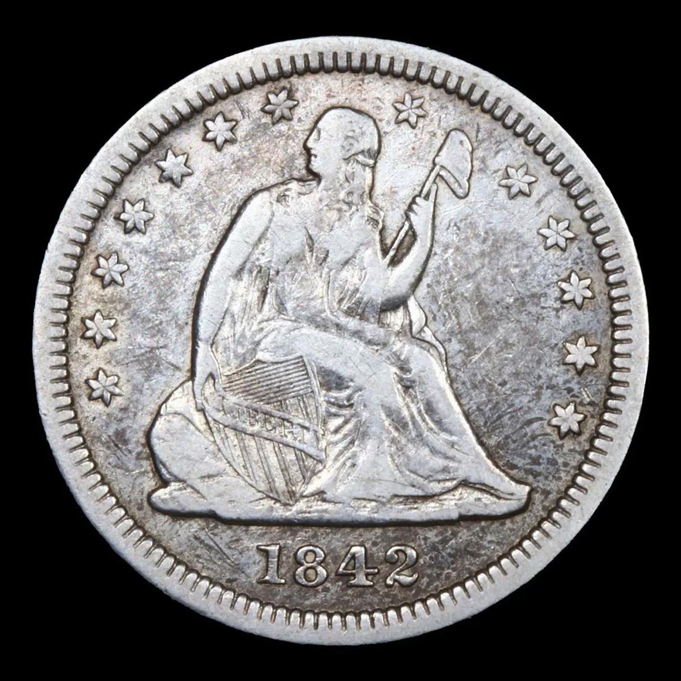 1842-o Large Date Seated Liberty Quarter 25c Graded vf35 By SEGS. A Key Date's Pick, Bid to Win, Don't let it get Away Coin