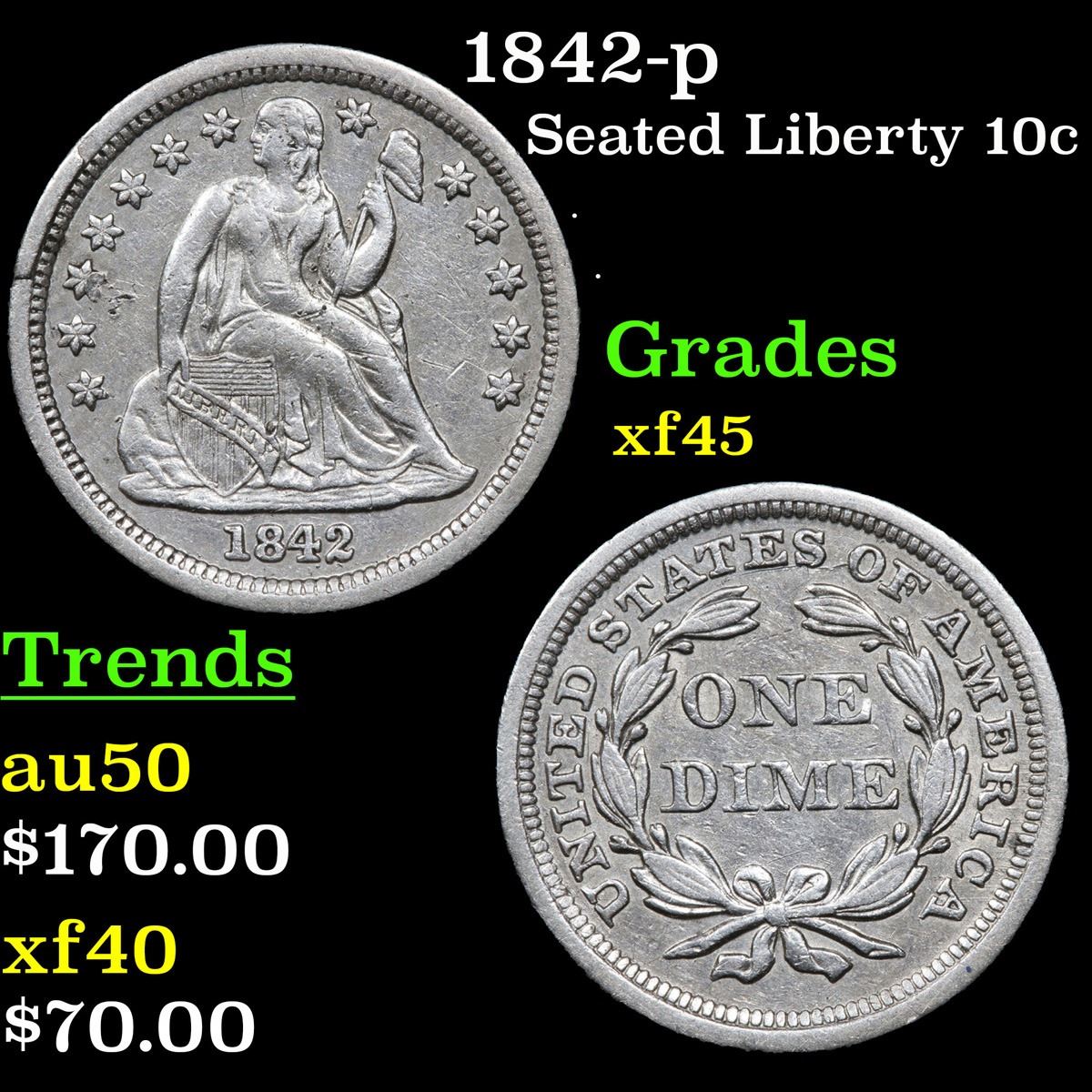 1842-p . . Seated Liberty Dime 10c Grades xf+.