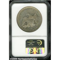 <B>1843<img border='0' src='http://www.heritagecoins.com/images/star.gif' width=10 height=10>$1 AU53 NGC.</B></I> Light gray surfaces display well defined motifs and traces of luster in protected areas. A few minute marks are scattered about.