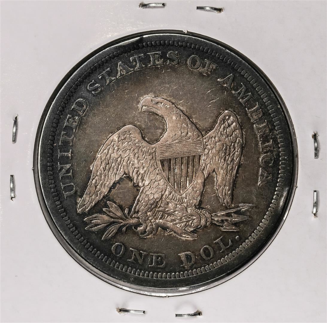 One 1843 $1 Seated Liberty Silver Dollar Coin.