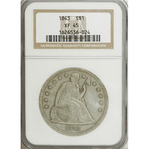 1843 $1 XF45 NGC. NGC Census: (34/194). PCGS Populatio