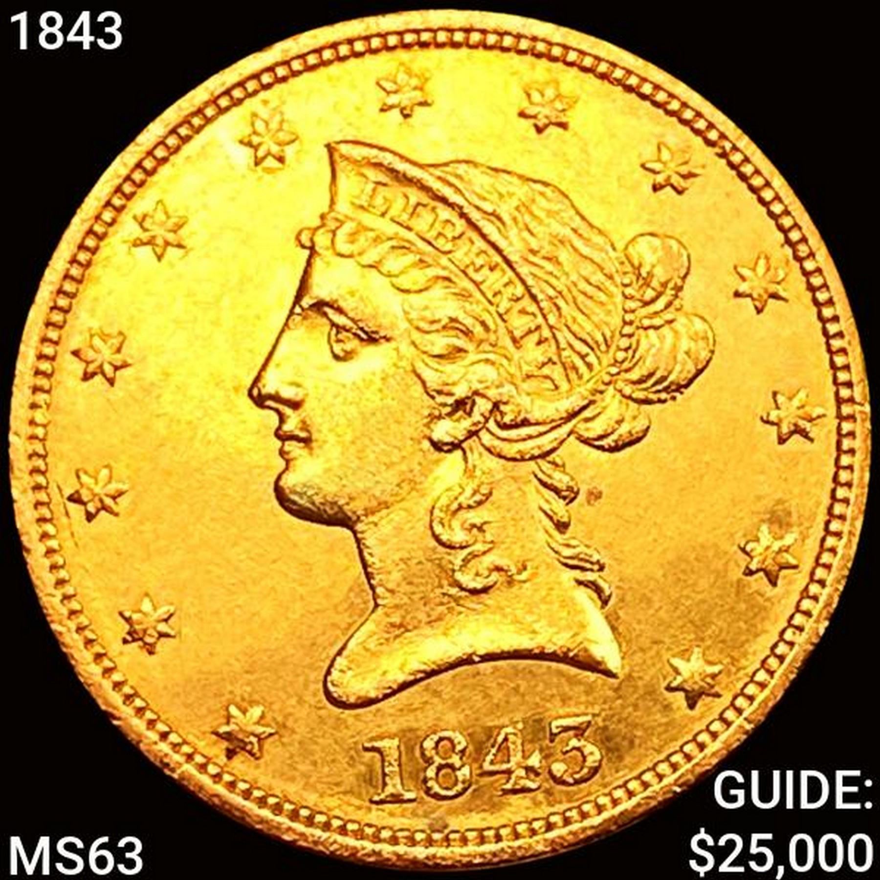 1843 $10 Gold Eagle CHOICE BU