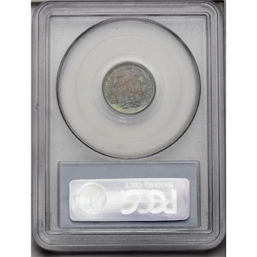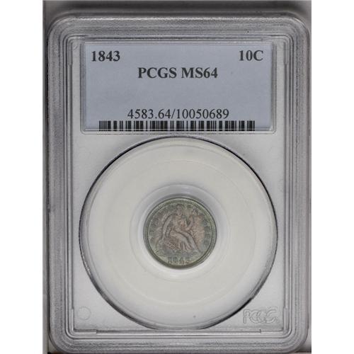 <B>1843<10C> MS64 PCGS.</B></I> Lustrous surfaces are bathed in peripheral cobalt-blue patina that frames mauve-tan coloration in the centers, and exhibit sharply struck design elements. A few light handling marks are generally concealed in the toning. Population: 11 in 64, 3 finer (4/06).